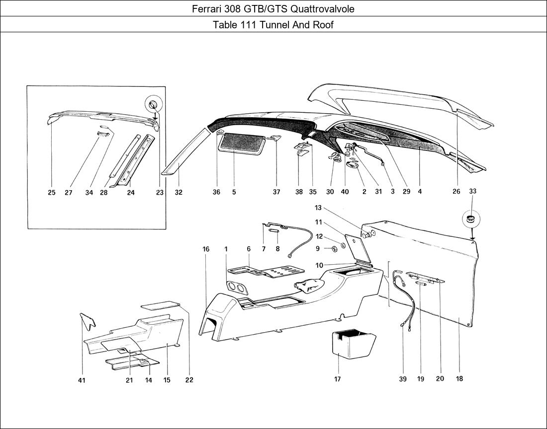 > Ferrari Parts 308 GTB/GTS Quattrovalvole Table 111 Tunnel And Roof Parts
