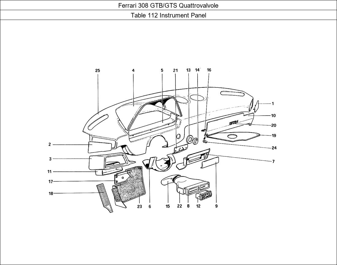 > Ferrari Parts 308 GTB/GTS Quattrovalvole Table 112 Instrument Panel Parts