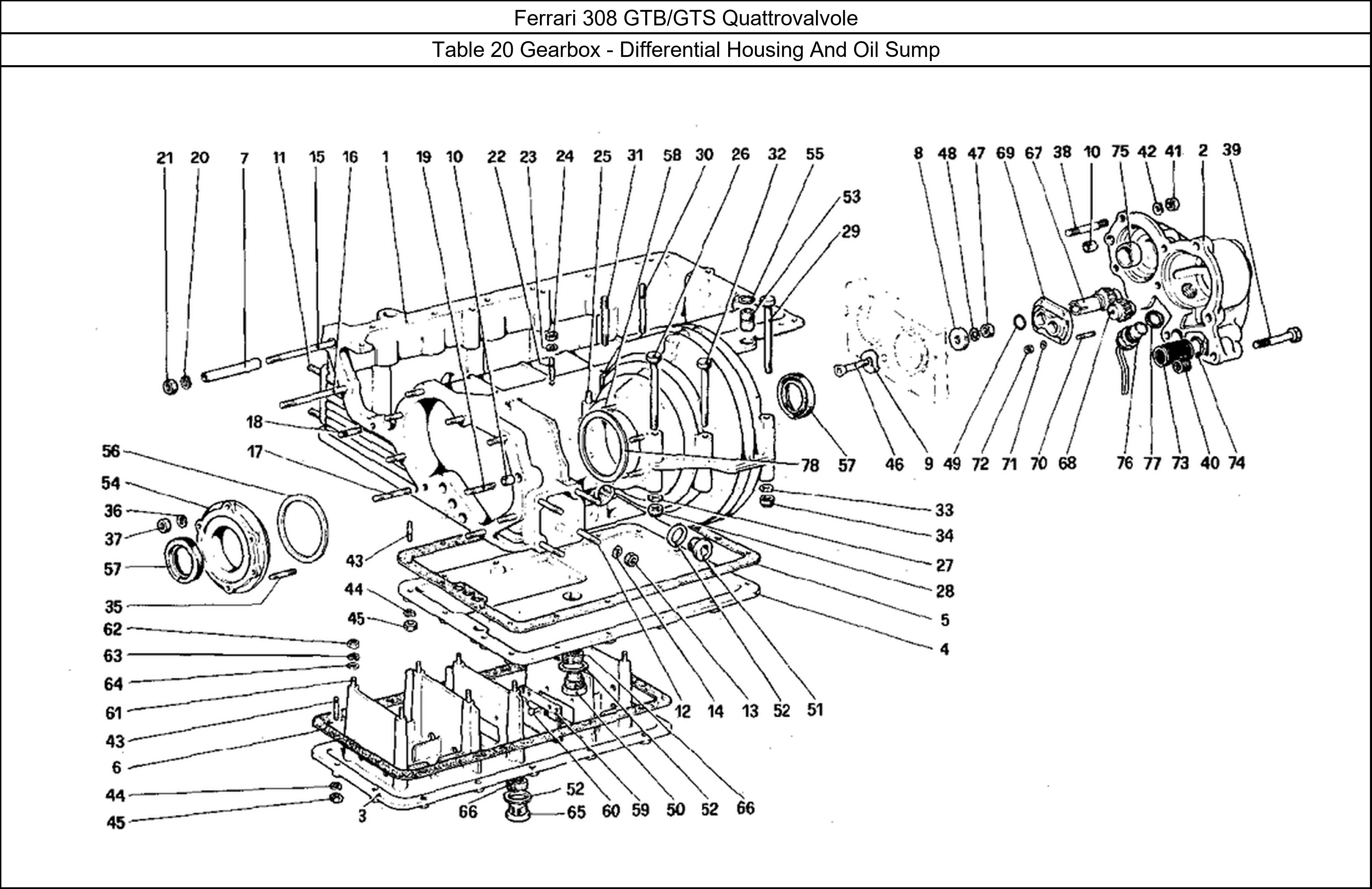 > Ferrari Parts 308 GTB/GTS Quattrovalvole Table 20 Gearbox - Differential Housing And Oil Sump Parts